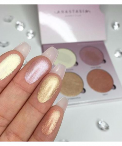 – 4 x 0.26 oz / 7.4 g resaltadores de polvo metálico en bronceado (ámbar con un penique de metal), turmalina (marrón cálido con un acabado de oro rosa), piedra lunar (cuarzo radiante con un acabado de perla), verano (luminoso) arena con un acabado en oro blanco)