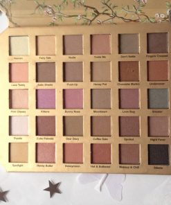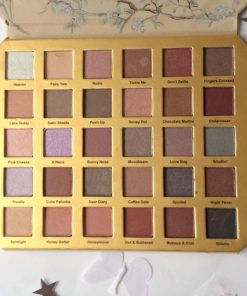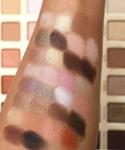 Bonita ¿verdad? Es una paleta muy versátil ideal para crear un montón de looks. Los colores que podemos encontrar están entre: rosas, melocotones, malvas, vainilla, beig, marrones, anaranjados, cobrizos, tierra, negro, grises, dorados, ….una gran gama de colores, todos preciosos y combinables entre sí. La pigmentación de las sombras es estupenda, ni pigmentan demasiado ni se quedan cortas, perfectas para maquillarte tranquilamente sin acabar como un cuadro. No son nada polvorientas ni tizosas así que no sueltan polvillo al aplicarlas, algo que agradecemos!